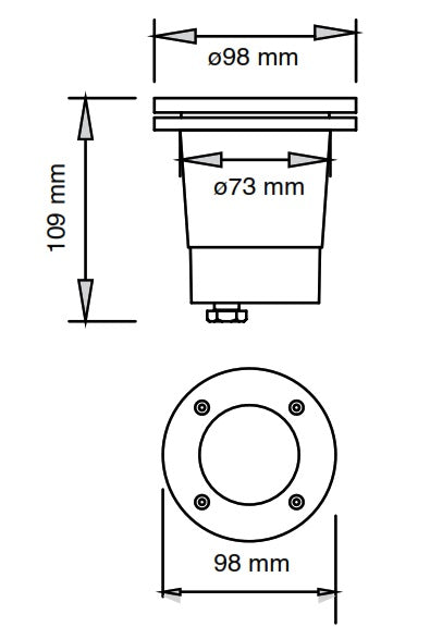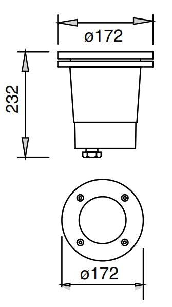 Estevez. Luminario para empotrar en piso. cuerpo en tecnopolímero, negro, resistente a inmersión temporal, resistencia a alto impacto. IP67, IL10, apto para zonas marinas. No incluye foco.